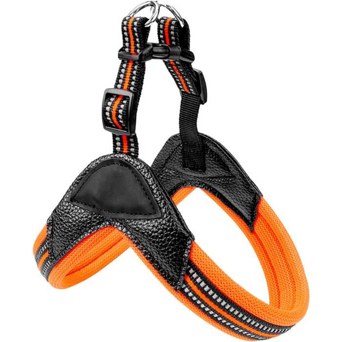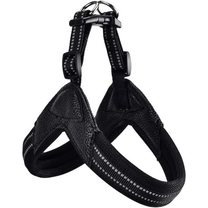The harness is made from highly reflective nylon material for visibility to passing pedestrians and vehicles, which ensures the safety of your dog in low light.