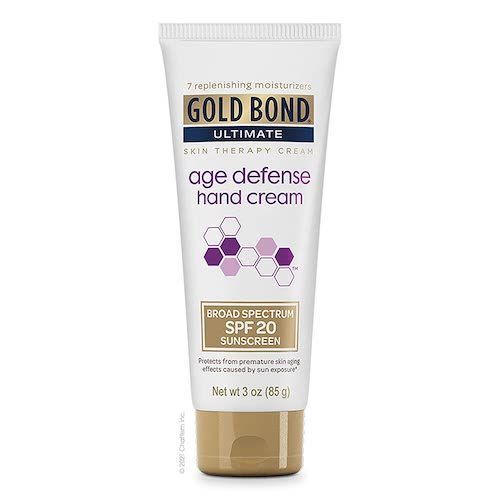 If you're looking for the best anti-aging hand cream, look no further than Gold Bond Ultimate Hand Cream 3 oz. With Broad Spectrum SPF 20 Sunscreen, Age Defense. This powerful formula contains seven different moisturizers and three nourishing vitamins to help replenish lost moisture and protect your skin from aging and sun damage.