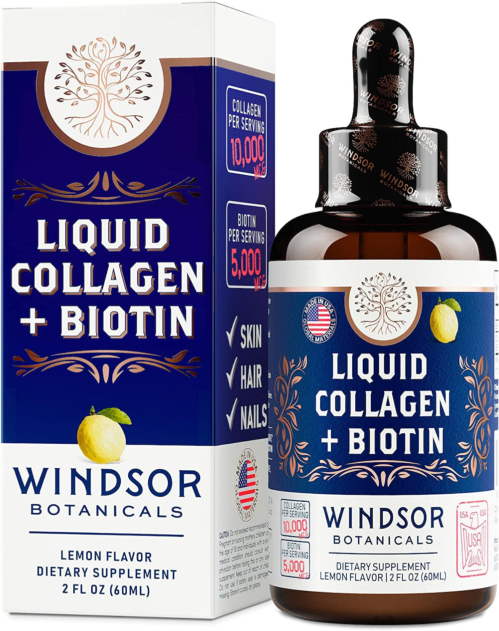 We really like Windsor Botanicals liquid collagen peptide supplement from Windsor Botanicals for a few reasons. First of all, it comes in a 60-day supply, so you can really see the benefits of taking it over time. It's also a full-strength formula, which is great if you're looking for a powerful collagen supplement. Additionally, it's very easy to take - just one dropperful per day - and it has a pleasant lemon flavor. Finally, we appreciate that it's made with naturally-derived ingredients and is free of GMOs, gluten, and dairy.