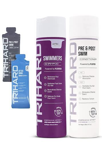 If you're an aquatic athlete, whether you're a daily swimmer or a frequent water sports enthusiast, TRIHARD Swimmers Shampoo Extra Boost + Pre & Post Swim Conditioner is the perfect solution for your hair and chlorine problems. This specially formulated shampoo and conditioner duo provides deep hydration to dry hair, neutralizes pool chemicals, and soothes and repairs dry scalp and texture.