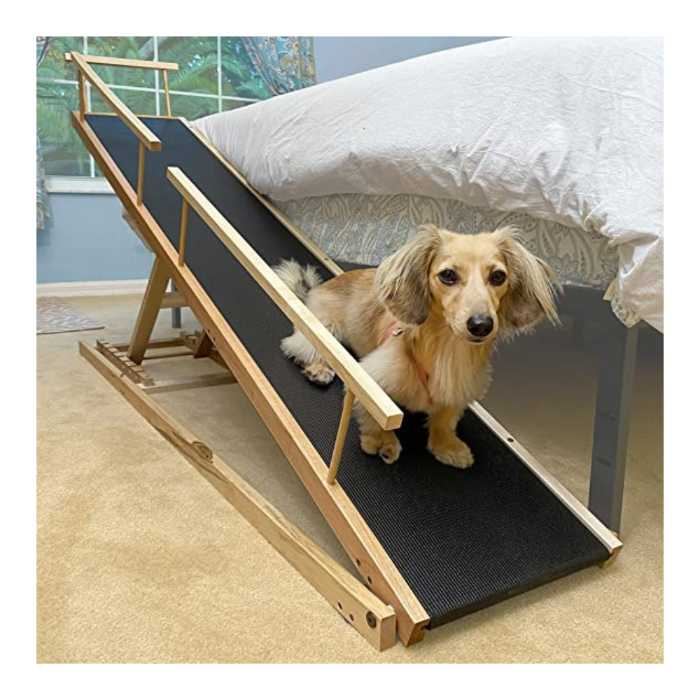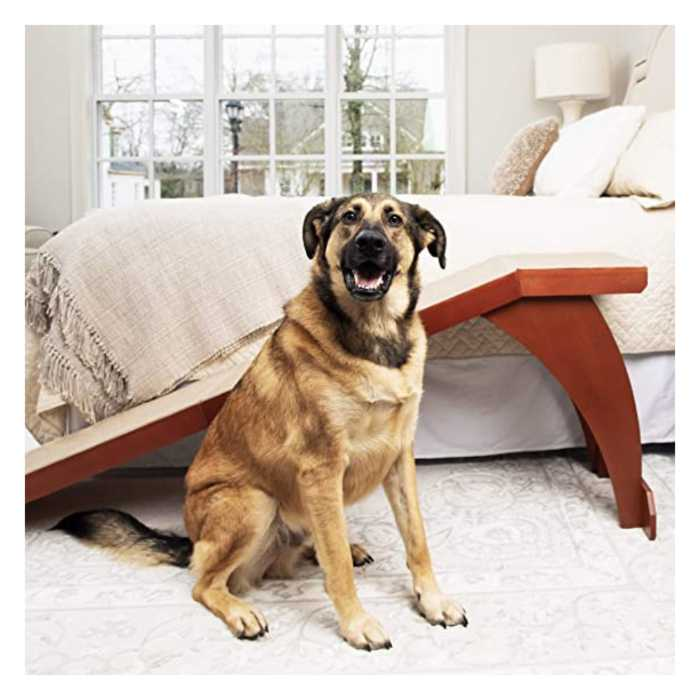 This sturdy ramp is made from solid hardwood and features adjustable height, so it can be used with beds of all sizes. The reversible railings and low-incline make it safe and easy for your pup to use, and the five finish options allow you to find the perfect match for your home décor.